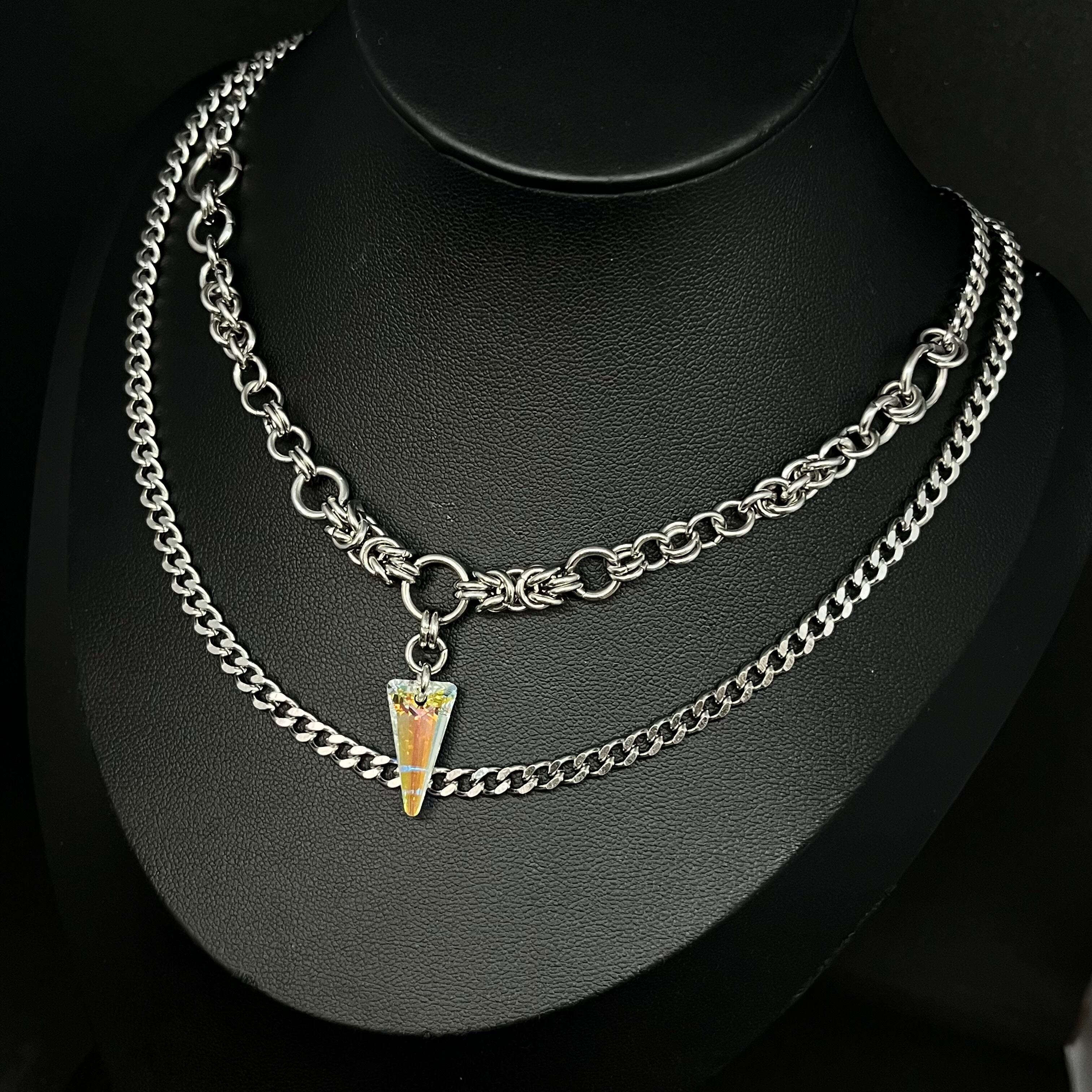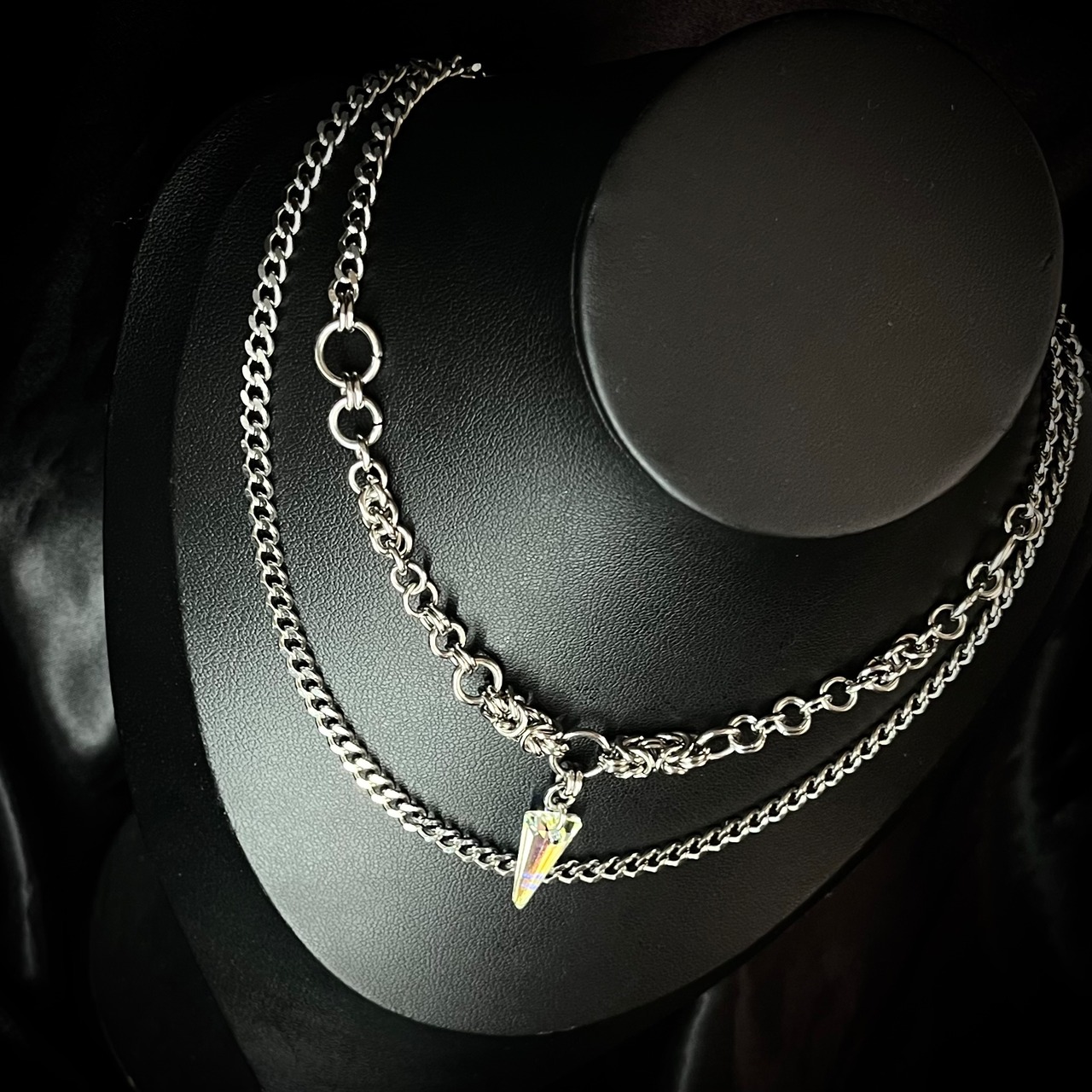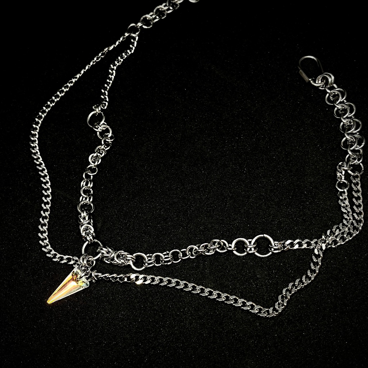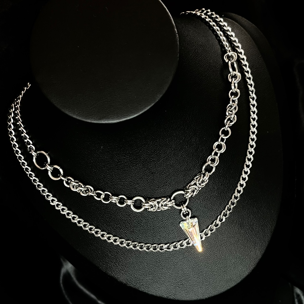 前部分はチェインメイルでチェーンを作っており、一点物デザインにしています✨️