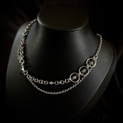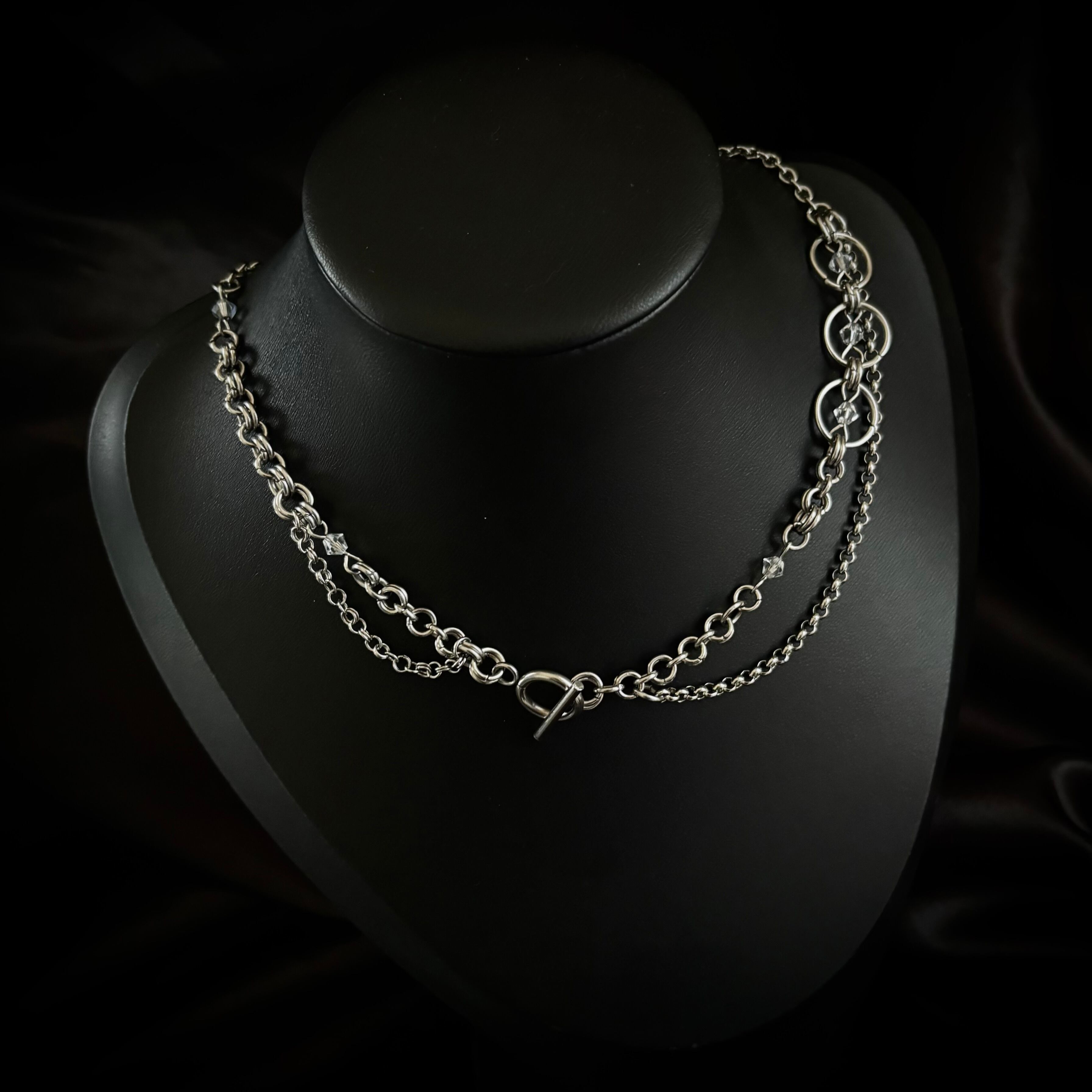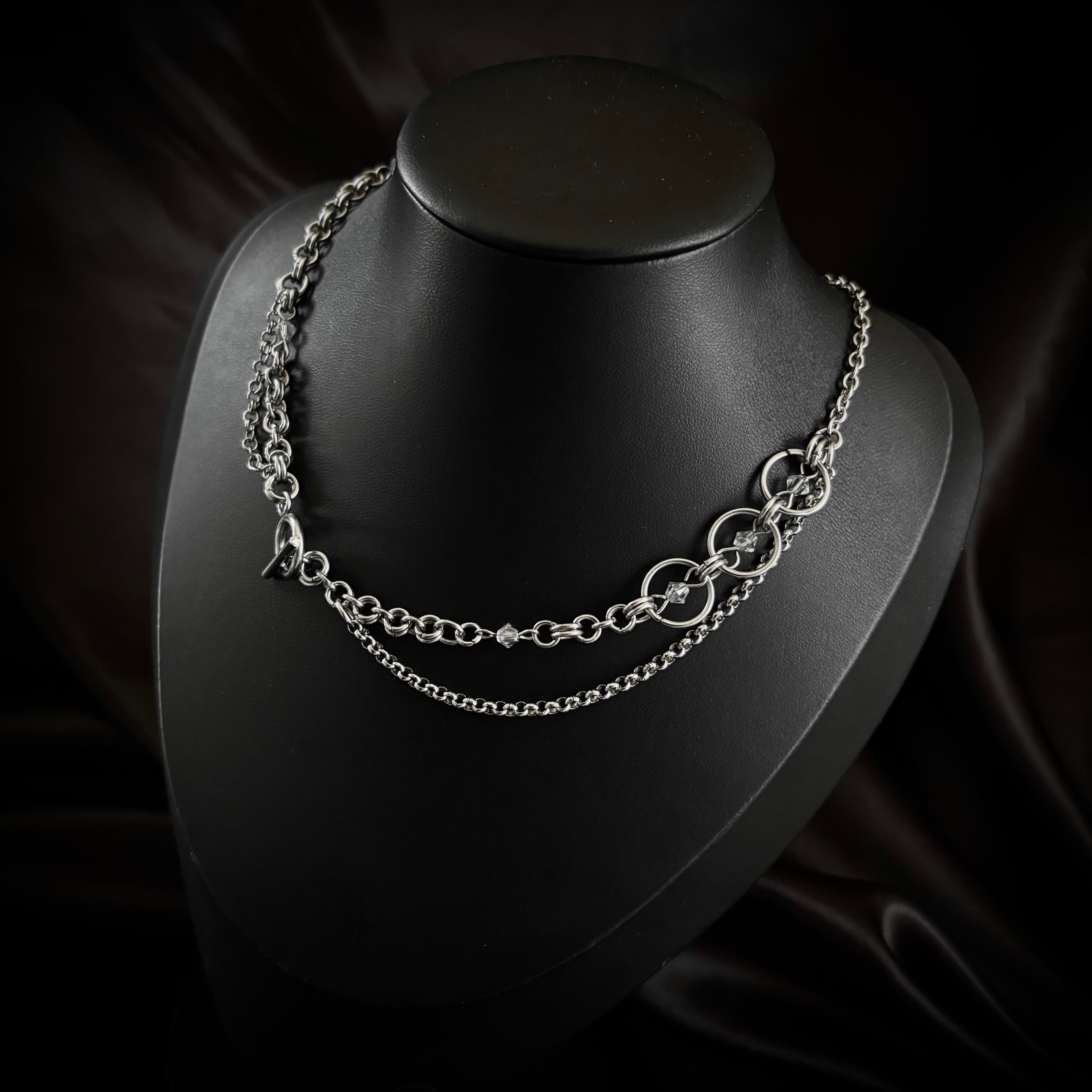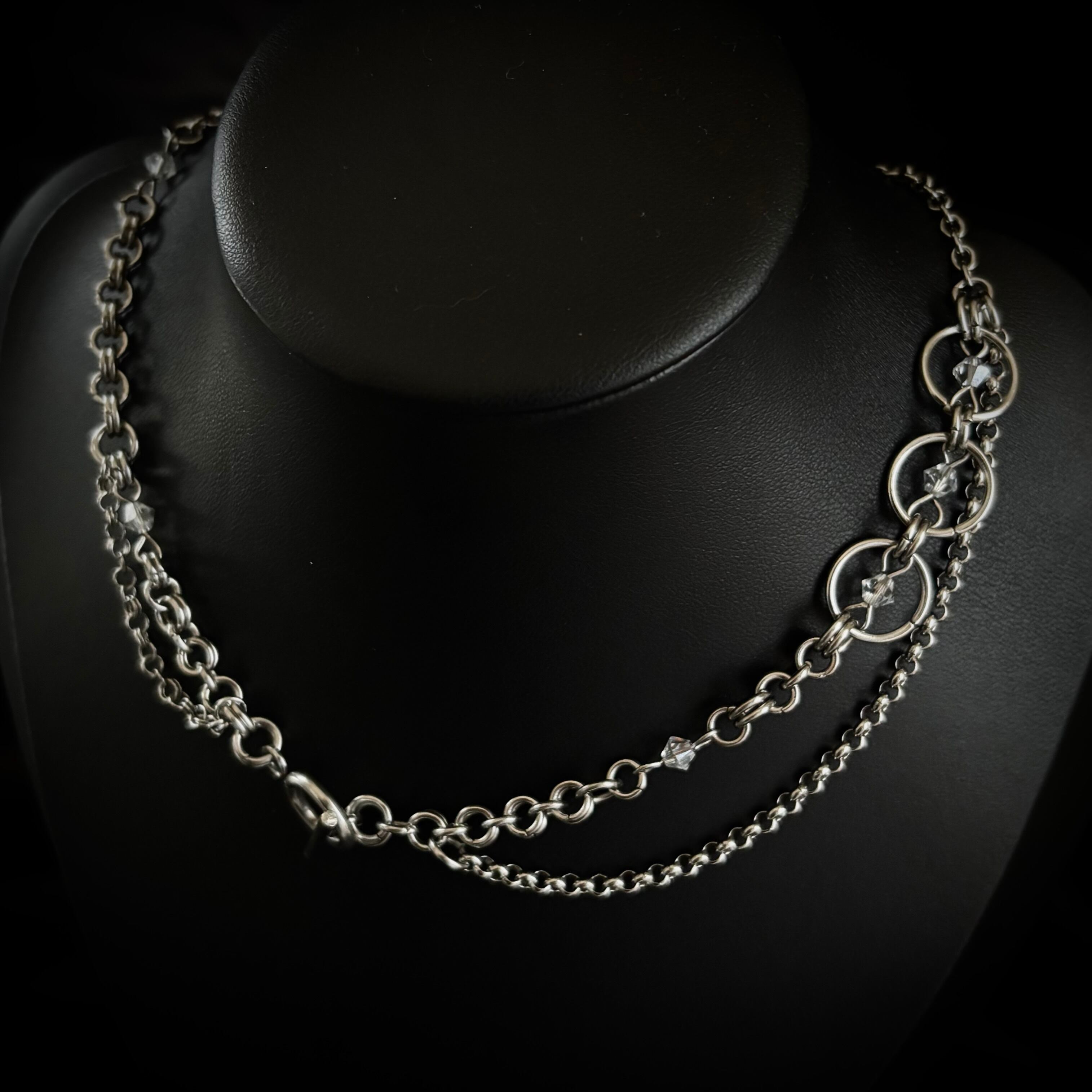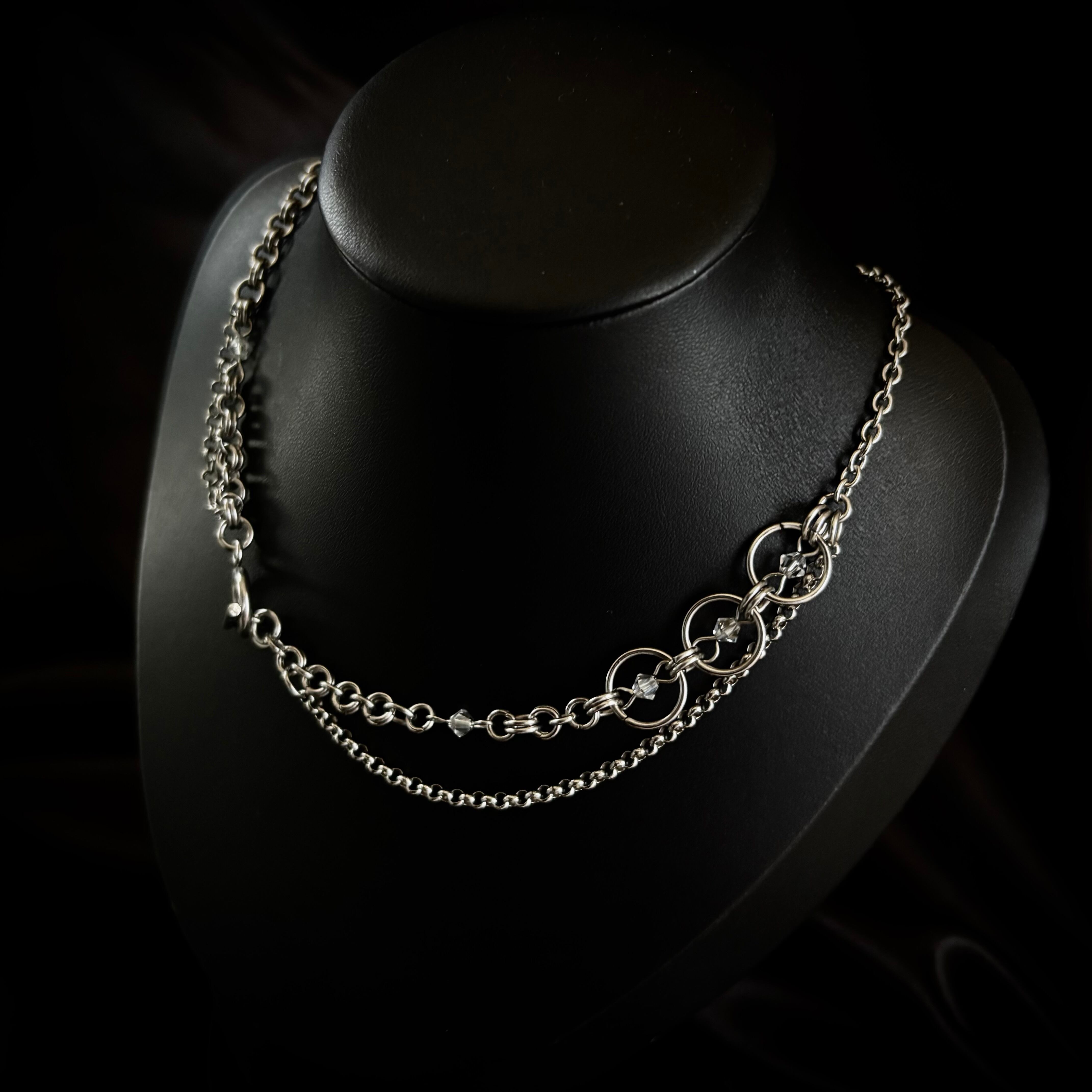 ♡クリスタルとチェインメイル、2種類のチェーンを使用したチョーカーネックレス
